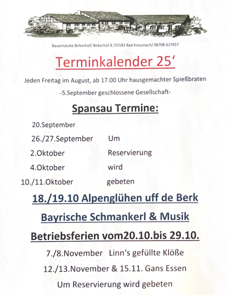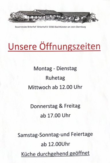 Kommen Sie auf einen Besuch zur Bauernstube Birkerhof und lassen Sie sich die Leckereien aus unserer Küche servieren. Wir freuen uns auf Ihren Besuch!